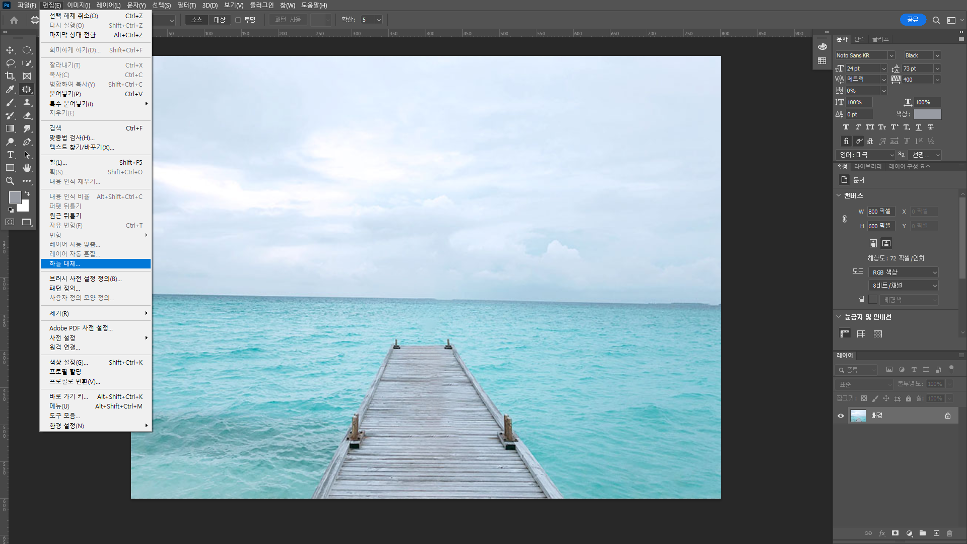 편집 > 하늘대체 버튼클릭