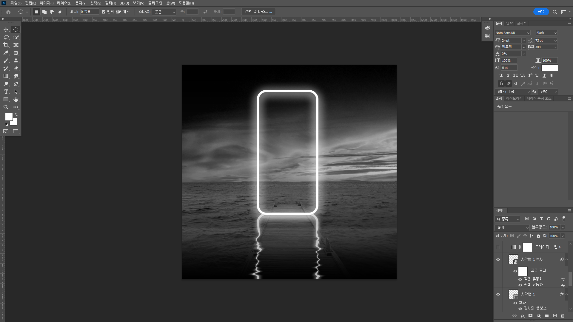 그라데이션 밑에 있는 그림을 흑백 처리했다.