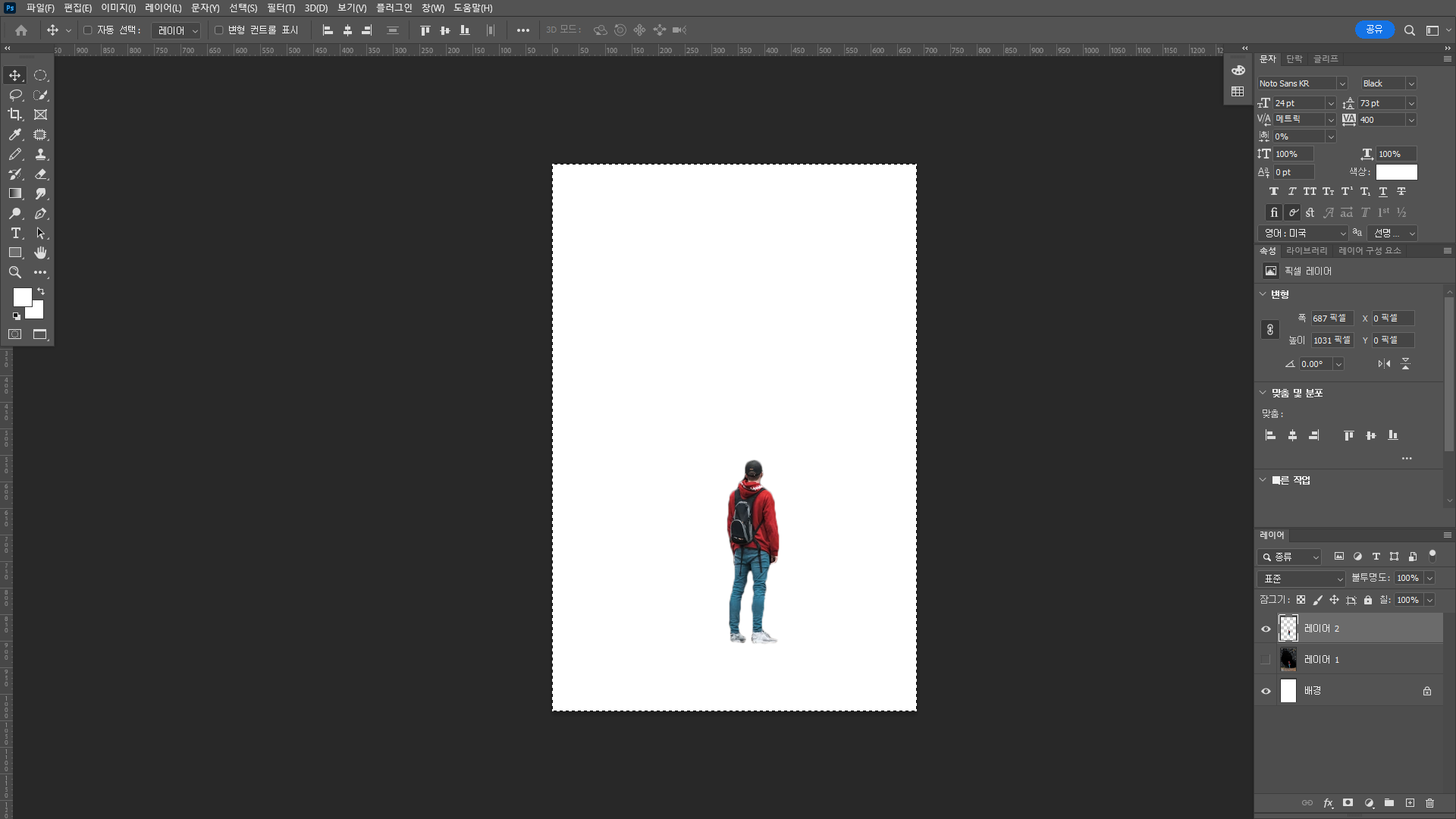 뒤돌아서 있는 사람 이미지를 다운받아서 매직툴을 이용해 빠르께 따준다.